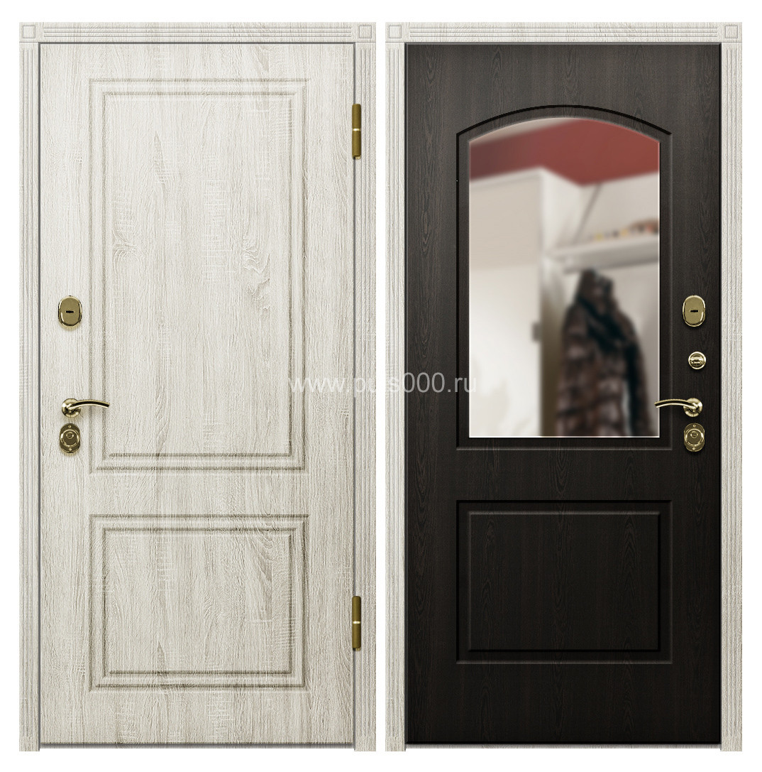 Входная дверь в квартиру МДФ с зеркалом белый ясень венге MDF-308