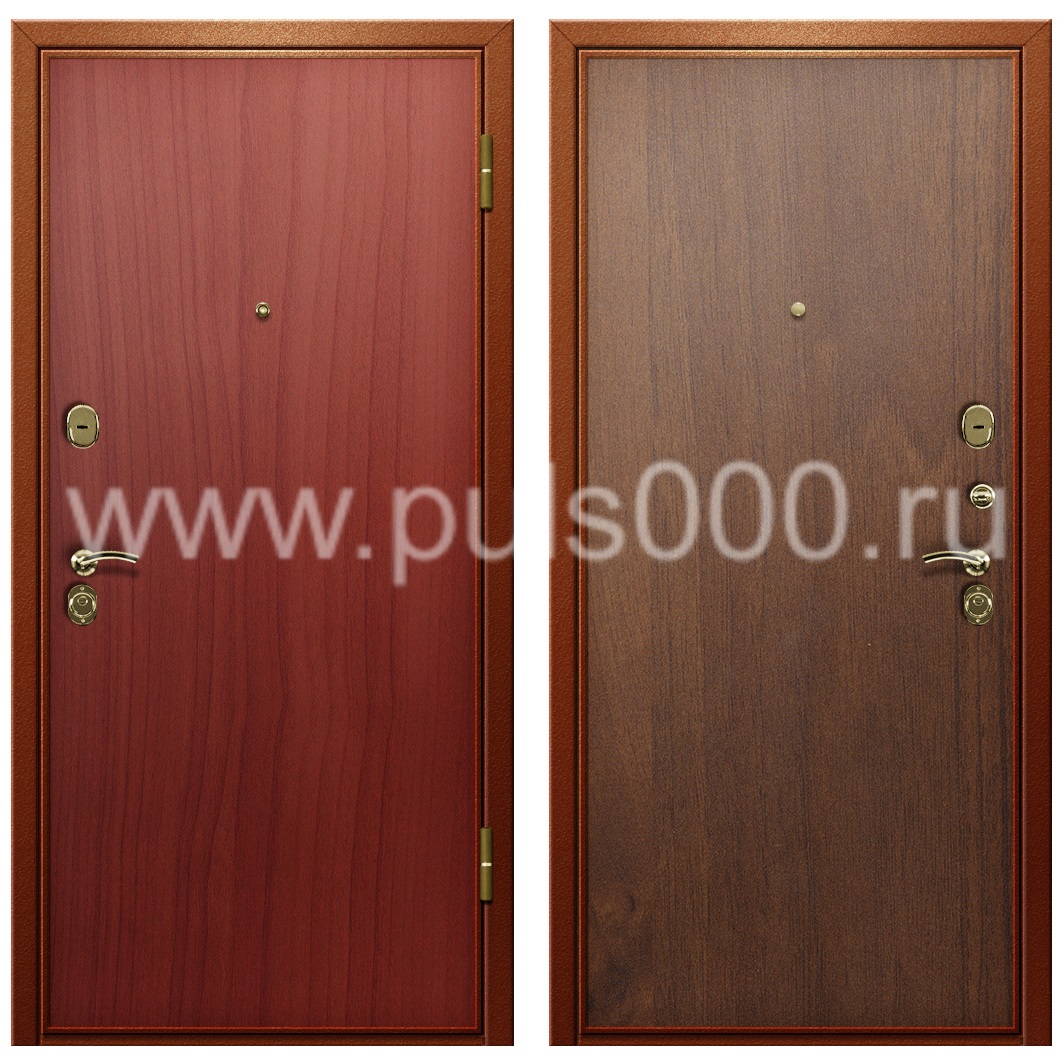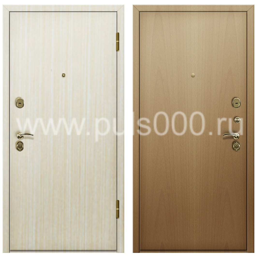 Наружная поверхность окрашивается порошковым составом способом напыления в любой цвет, по желанию заказчика. Также для отделки используются ламинат, экокожа, винорит и другие декоративные материалы. Железный лист толщиной от 2,2 мм обеспечивает требуемую жесткость конструкции и взломостойкость.